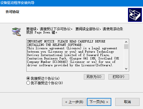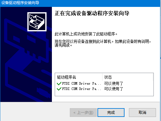 电脑安装设备驱动程序(USB-串口转换驱动,也称FDTI芯片驱动),过程见附录A
