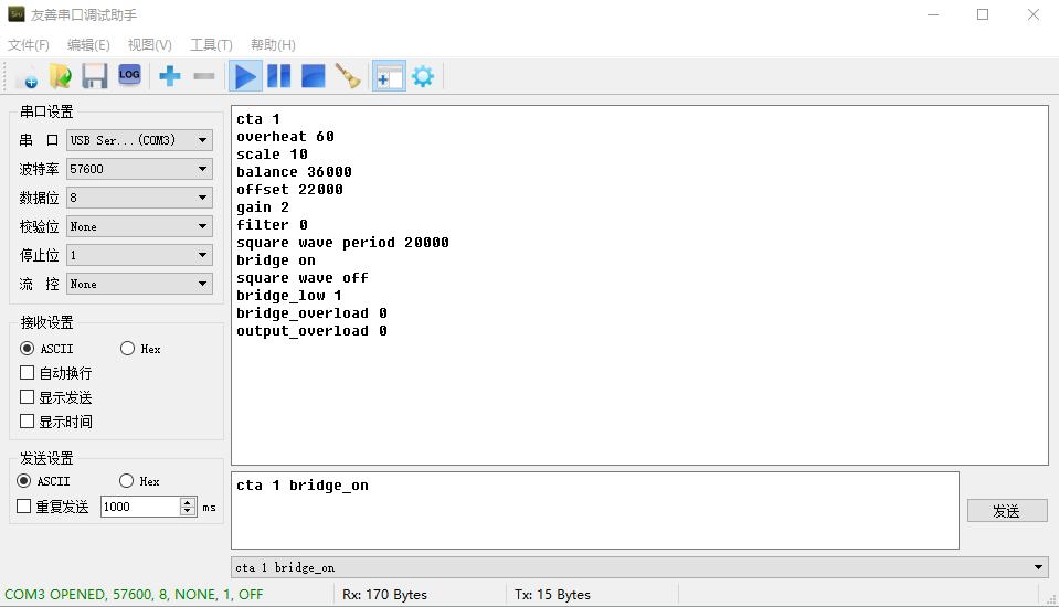 Ø通过串口调试程序写入 cta 1 bridge_on