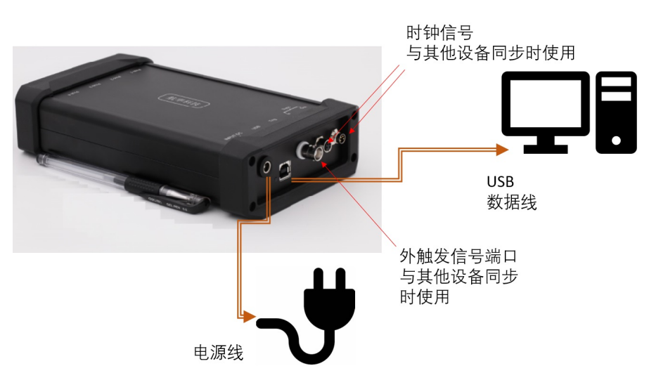首先使用USB数据电缆连接航华DAQ16数采仪到电脑