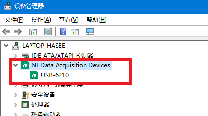 图 8 正确安装DAQmx驱动后,DAQ16数采仪设备显示在设备管理器中
